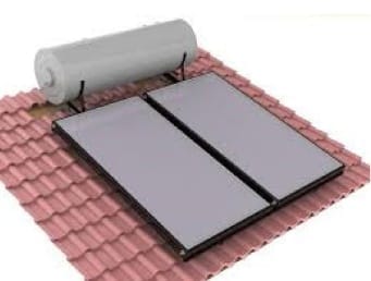 Coletores solares que captam a radiação solar e que a converte em energia térmica, para um deposito, aquecendo assim as aguas sanitárias (AQS)